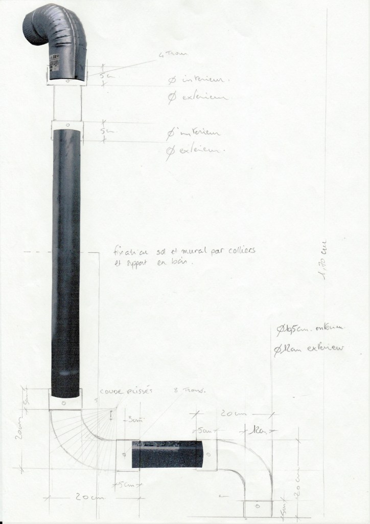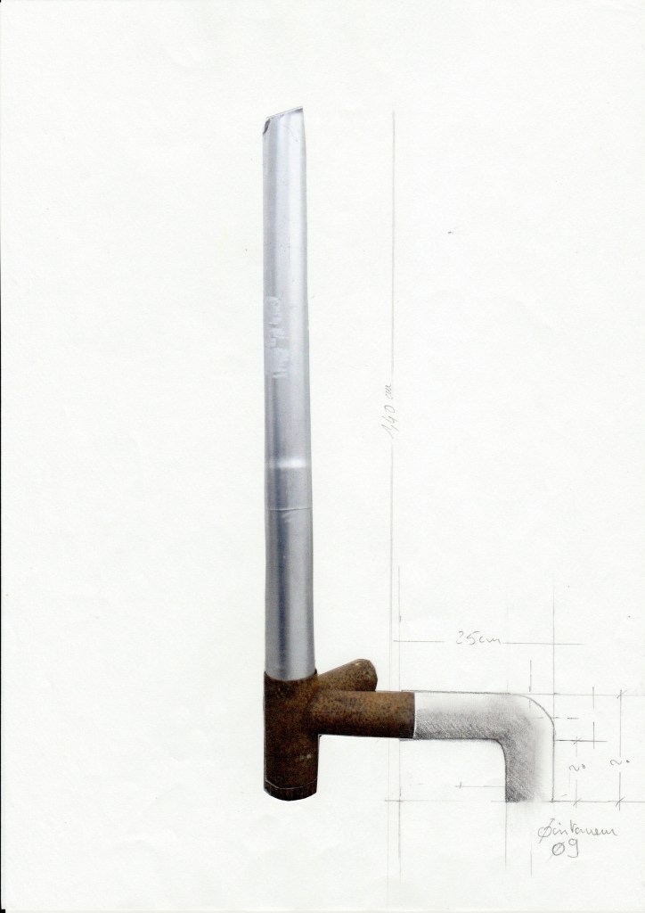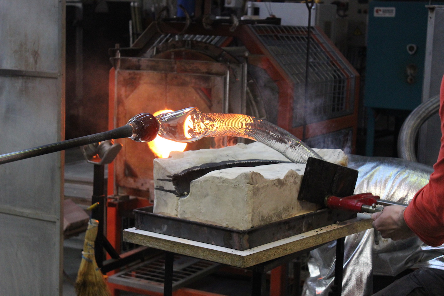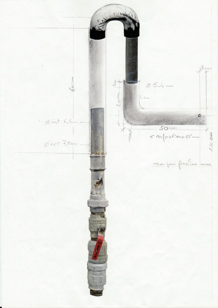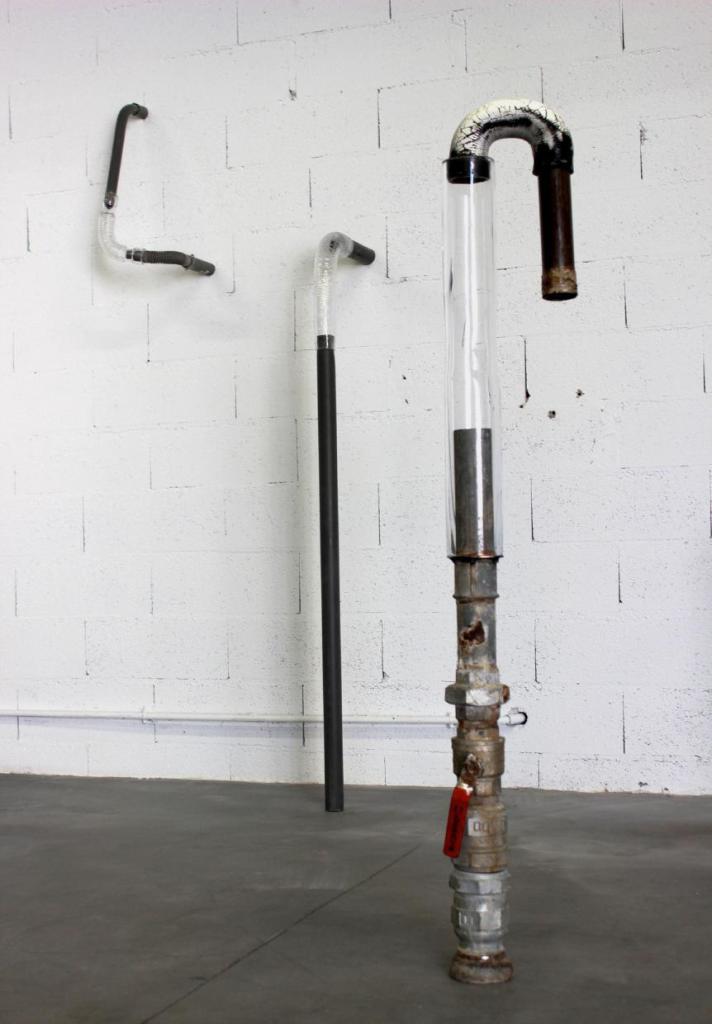 En 2017, j’ai réalisé une série de coudes et de tubes en verre soufflé, grâçe à des moulages en plâtre et avec le soutien du C.I.R.V.A (Centre International de Recherche sur le Verre et les Arts).
