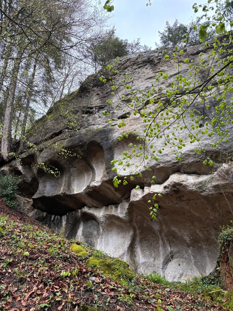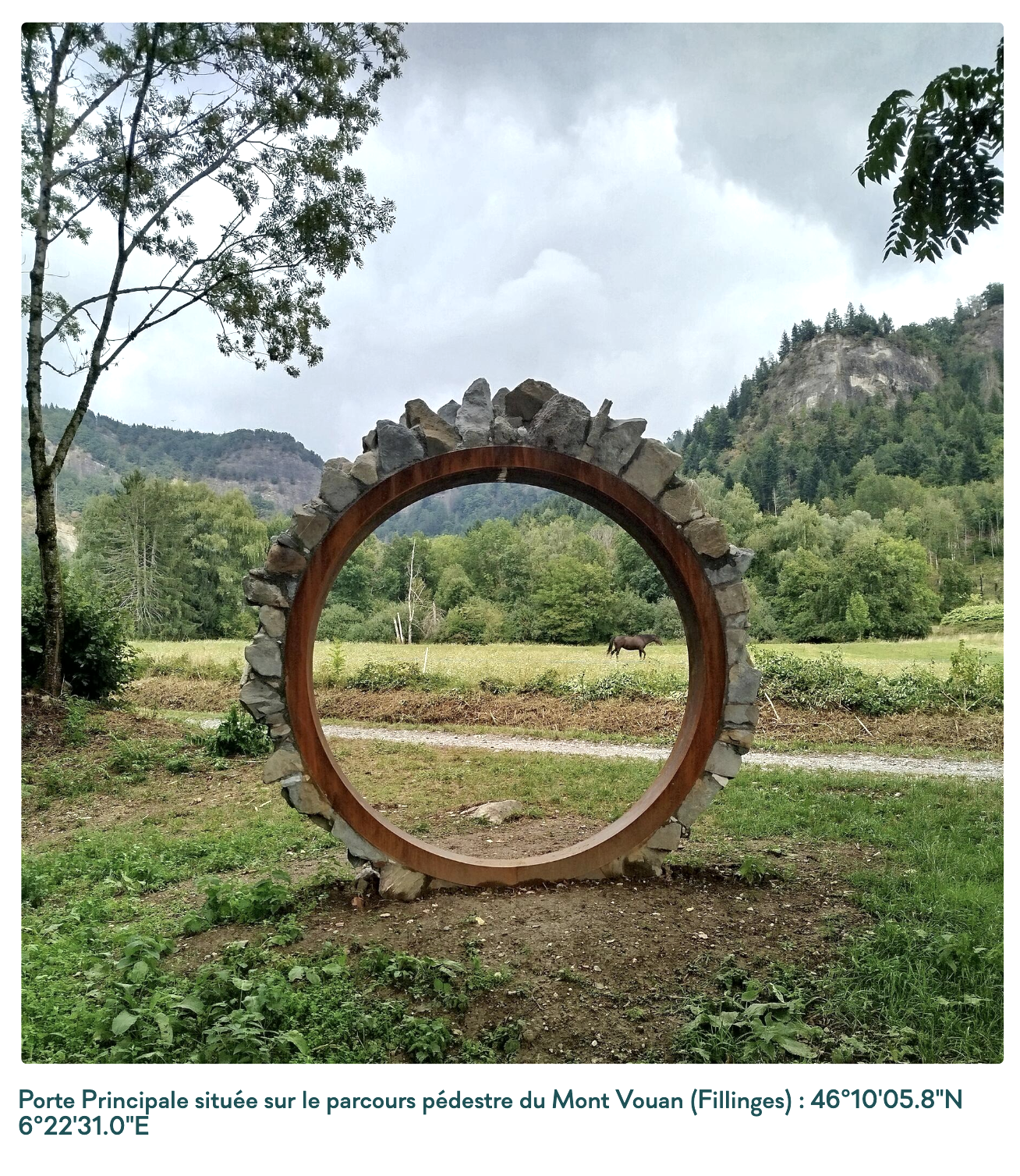 Les œuvres ont été pensées comme des « portes d’entrée » en résonance avec les sentiers et les grottes meulières de l’Espace Naturel Sensible du Mont Vouan.