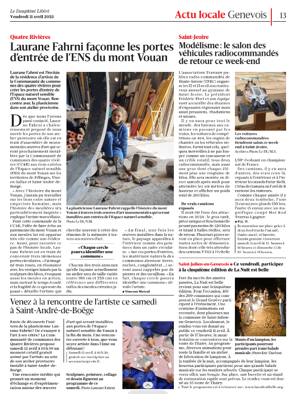 Le Dauphiné Libéré, Les Quatre Rivières , Laurane Fahrni façonne les portes d’entrée de l’Espace naturel sensible du mont Vouan- Avril 2025