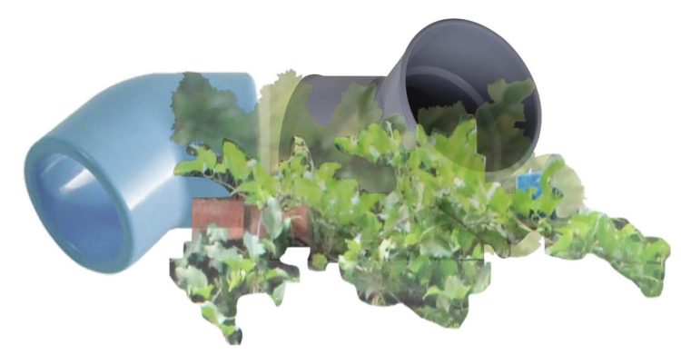 En mimant l’artificialité de la nature, Laurane mobilise des techniques de camouflage et de trompe-l’œil. Une contamination croisée entre des matériaux organiques et industriels, naturels et toxiques, confère à ses sculptures une apparence à l’opposé de leurs réelles propriétés physiques. Des fragments de câbles, tuyaux et autres conduits distribuant les fluides, sont associés à des bris de béton et de verre. Recomposés et détournés de leur usage initial, ils deviennent des écrins fertiles aux plantes rudérales. Sur les murs, ces petites capsules craquelées et abîmées renferment des microbiomes dotés de leurs propres temporalités. À travers ses sculptures composées comme des dessins superposés, Laurane témoigne de sa sensibilité aux endroits qu’elle traverse. Les jeux graphiques en trois dimensions imitent les capacités de croissance et de prolifération des lianes, des racines et du lichen. Leur subsistance prend alors la forme d’une résilience qui, par sa multitude, perturbe le régime ordonné des villes et des espaces d’exposition. »